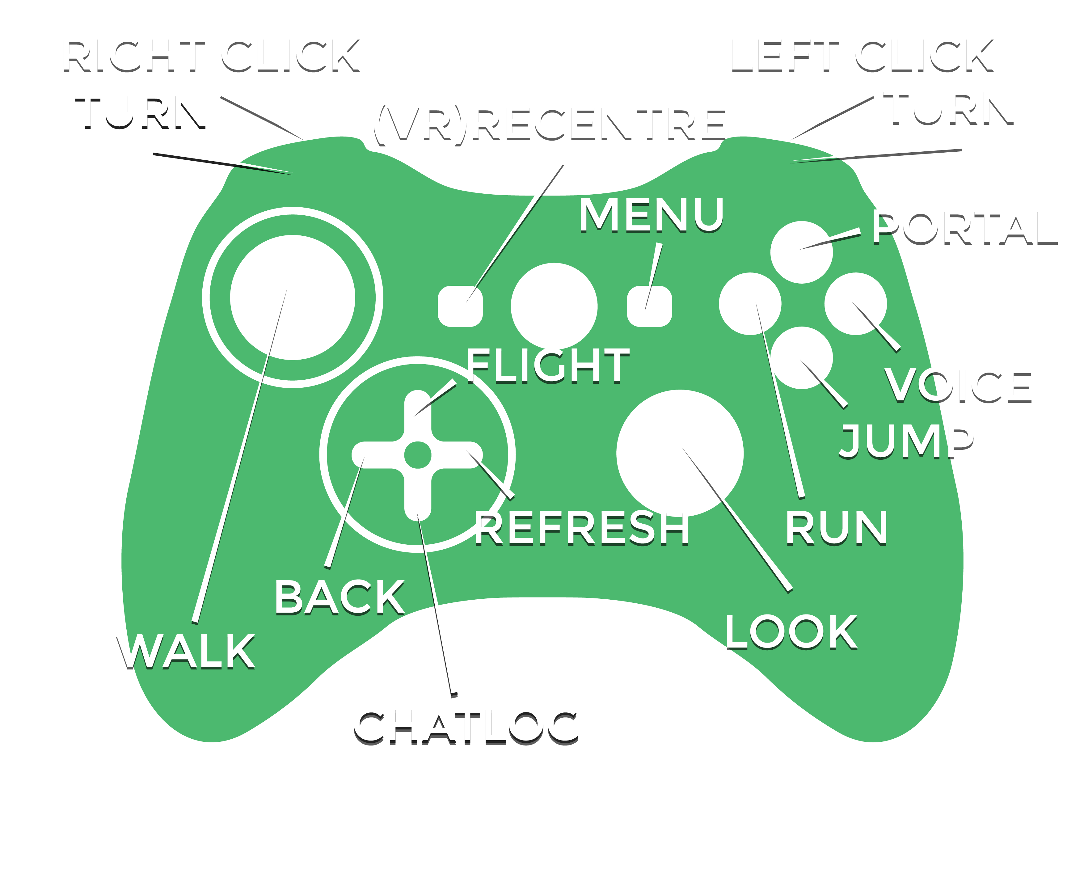 JanusVR has support for most controllers, specifically the XBOX 360 and XBOX One control schemes. If you're familiar with other first person experiences, you'll recognise that the analogue sticks control movement and gaze direction.